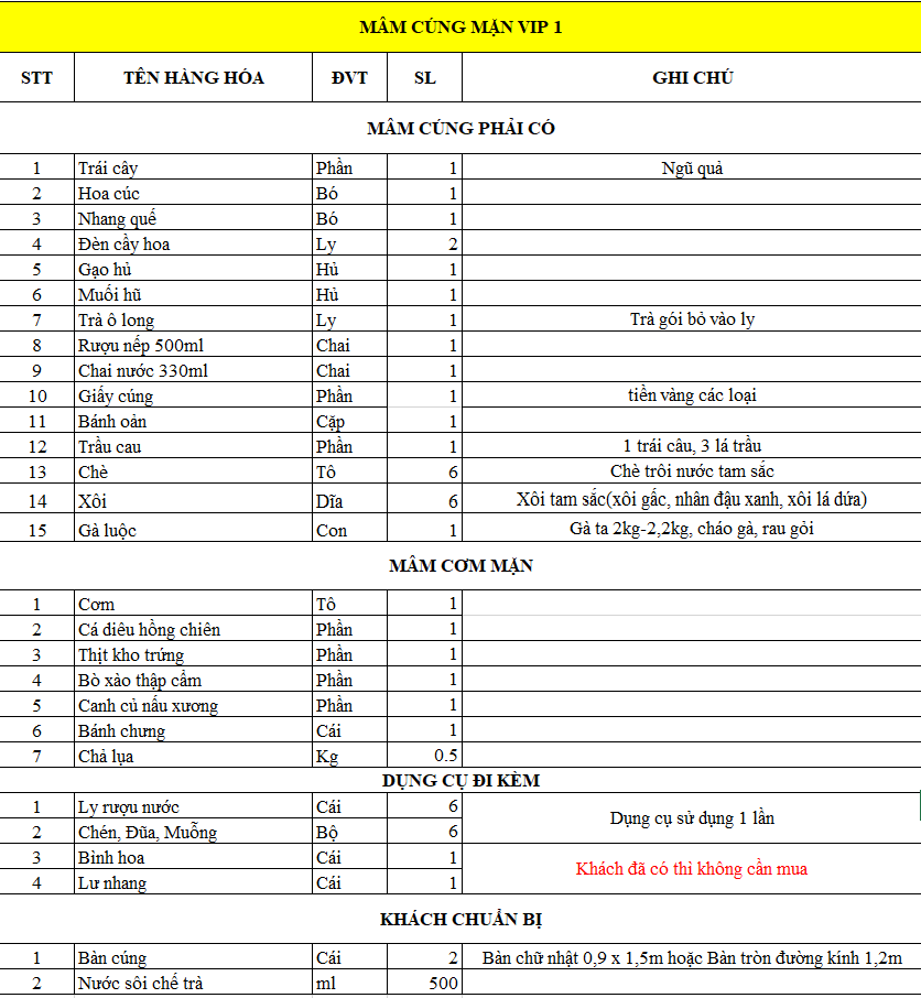 Mâm Cúng Mặn Ngày Rằm & Mồng 1 VIP 1 bao gồm: