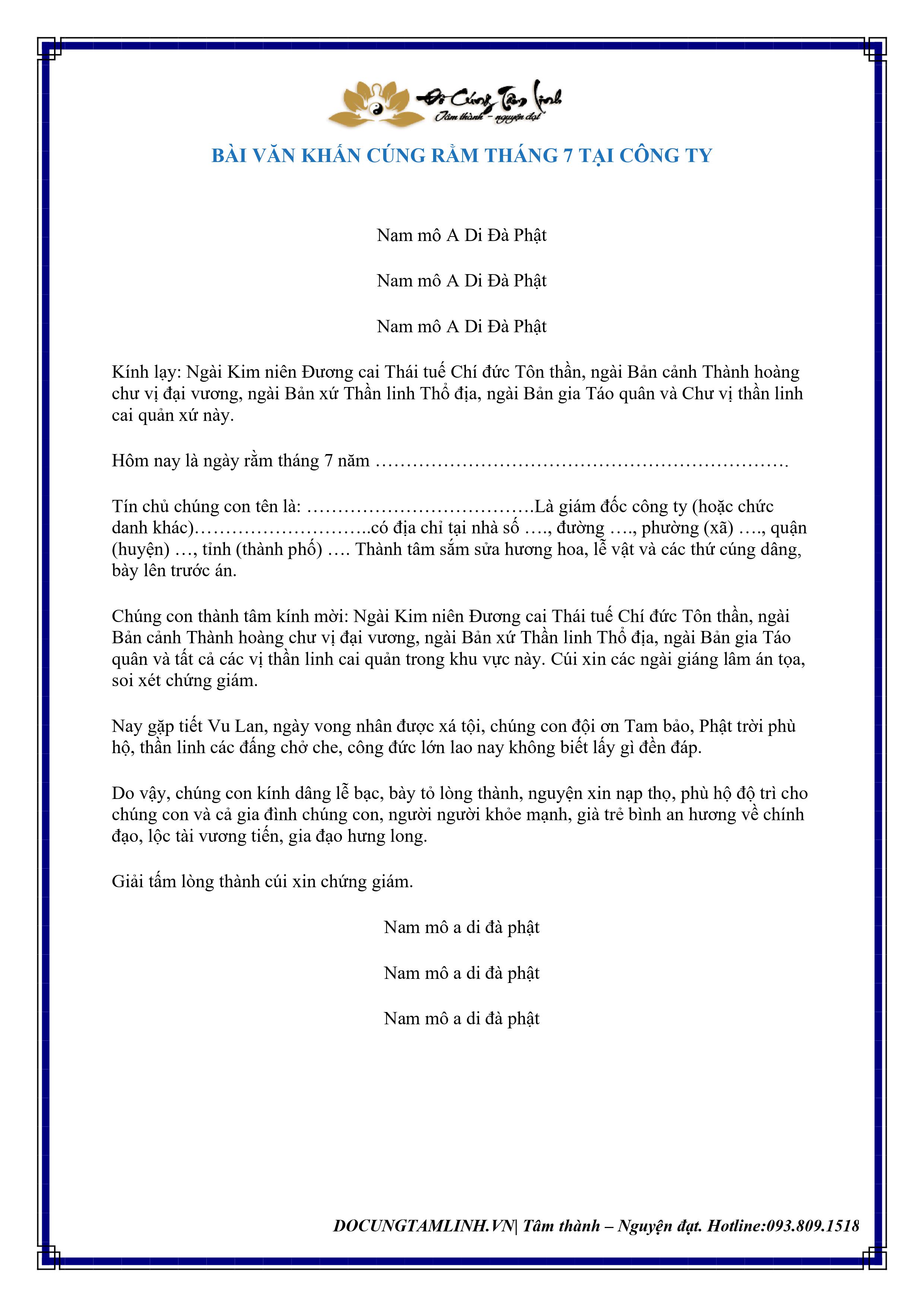 - Văn Khấn Cúng Cô Hồn Công Ty Tháng 7