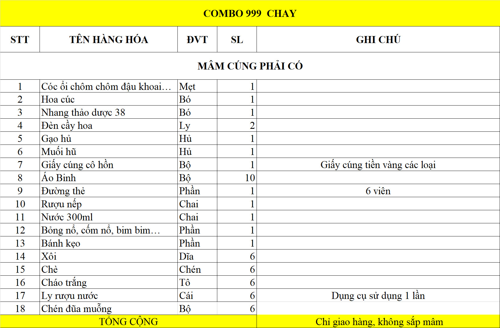 Mâm Cúng Cô Hồn Tiện Lợi 999 - CHAY